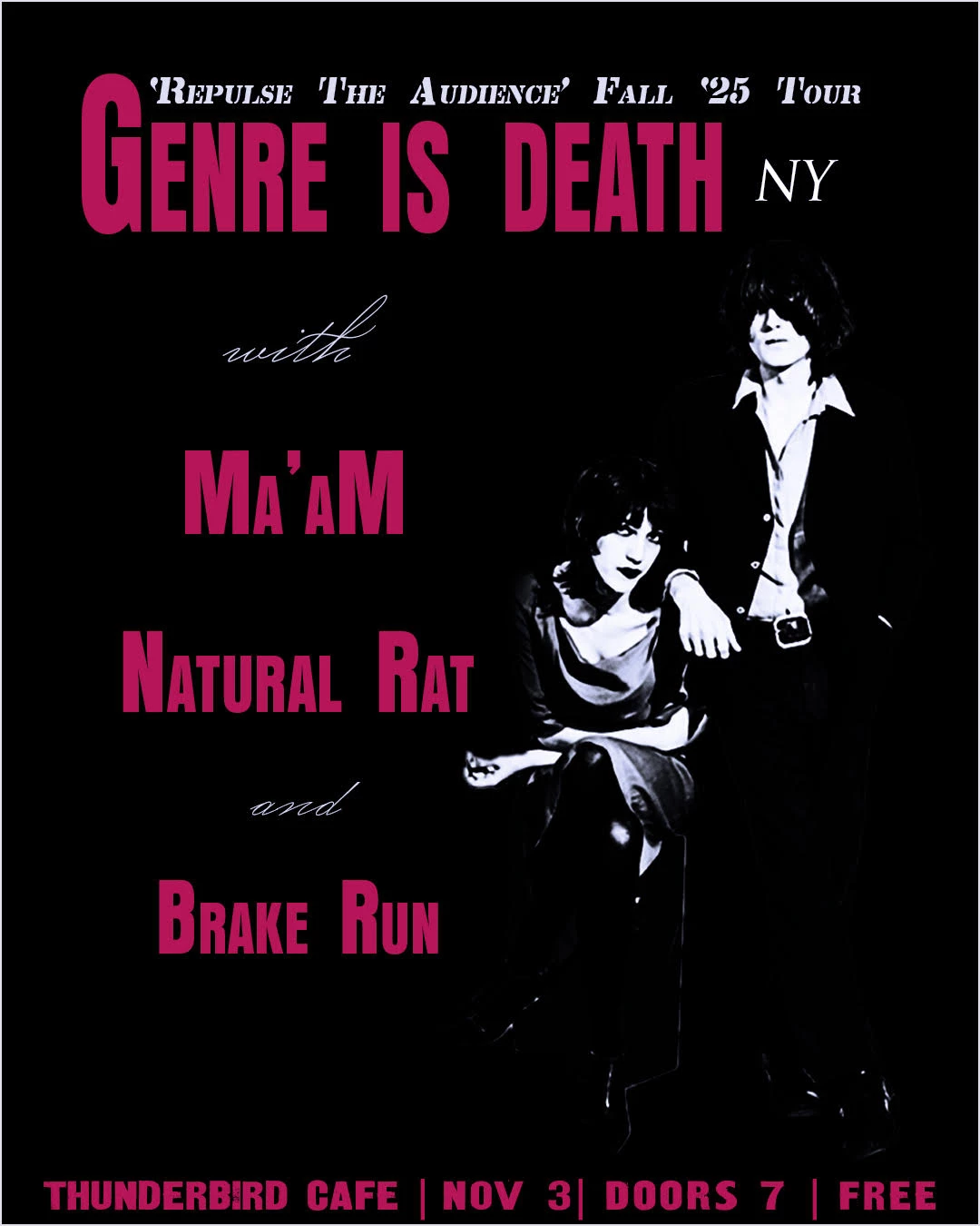 10/20 - thunderbird cafe with genre is death (ny), ma'am, and natural rat